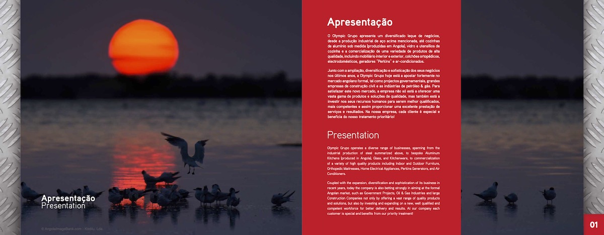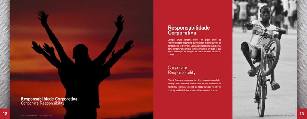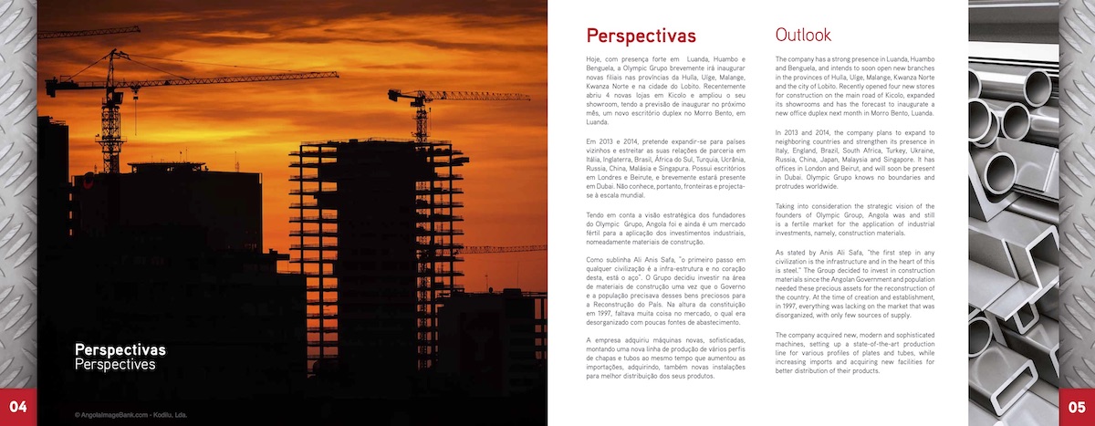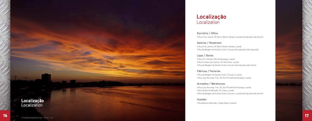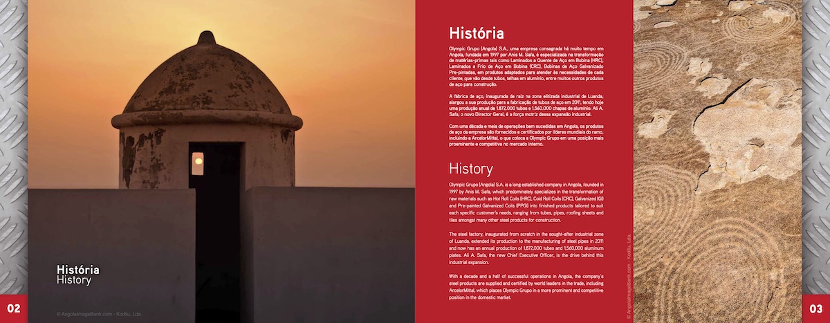 Criação, copyright, fotografias e produção de 1000 brochuras em Angola.