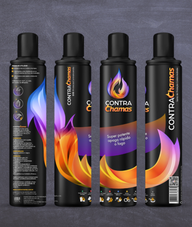 A tipologia foi escolhida para passar segurança, modernidade, movimento e feminilidade. A palavra “Contra” é mais sólida, mantendo o aspecto moderno do produto e a palavra “Chamas” transmite a ideia de movimento, de fogo, e foi totalmente redesenhada para aproximar o público feminino e interagir com o elemento fogo.